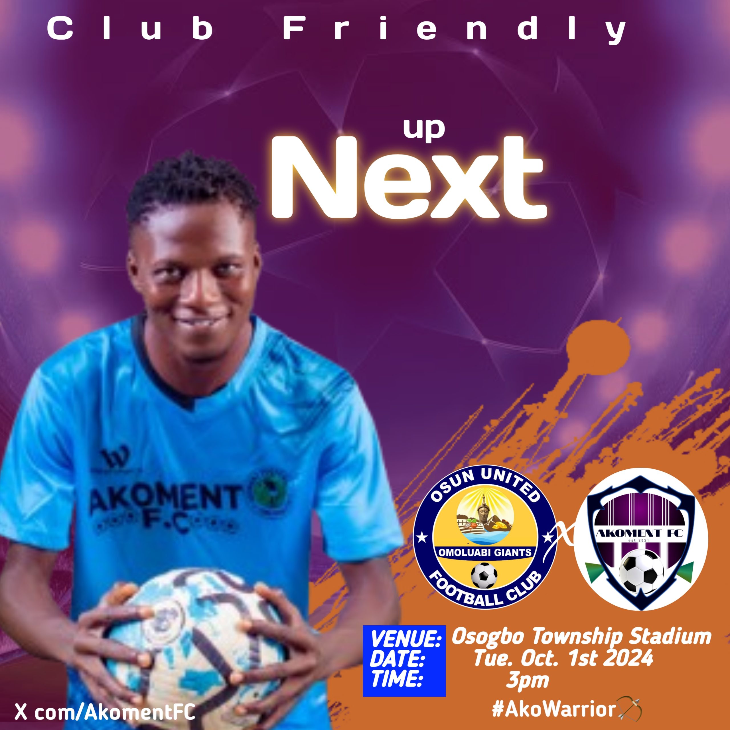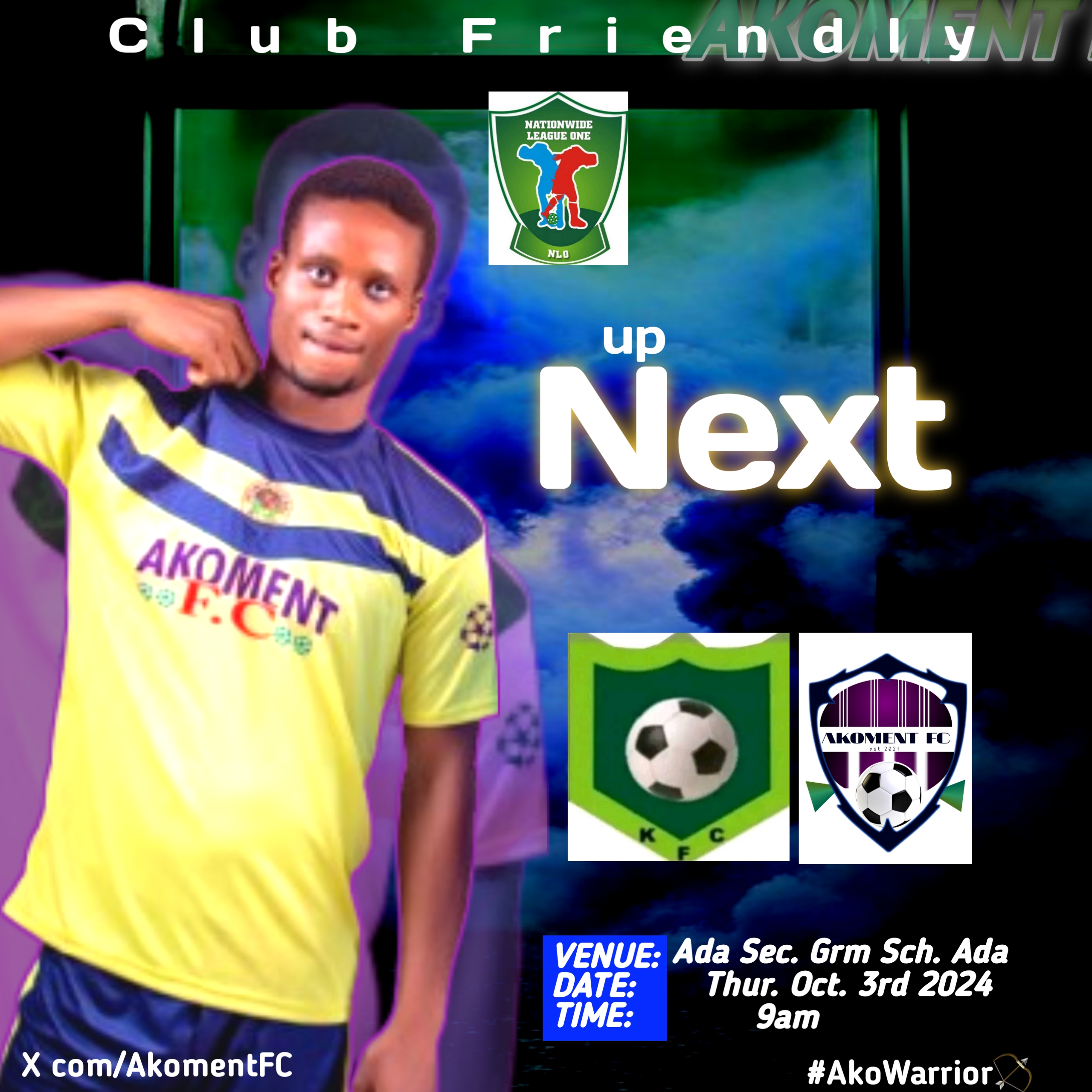 Akoment Football Club, commonly known as Akoment, is a professional football club in Ede, Osun State, Nigeria. The team birthed to give talented footballers platform competes in the Nigeria Nationwide League One Division One., the third tier division of Nigeria Football. The club was founded in 2021/2022 with the purpose of alleviating poverty amongst talented locals.